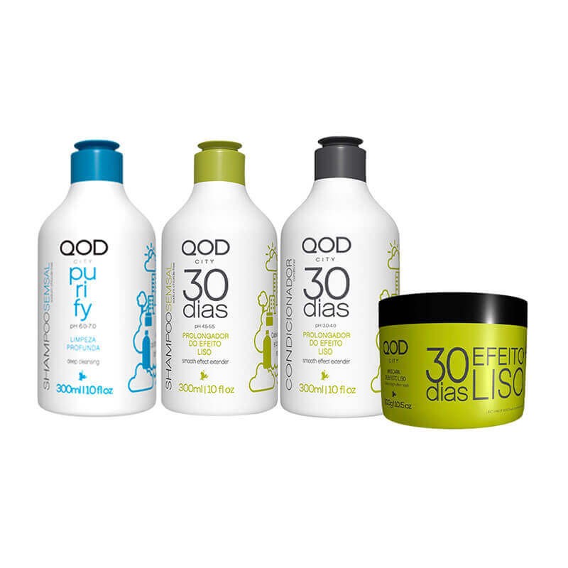 QOD City 30 Days Straight Effect Combo is a Brazilian Smoothing Treatment, composed of the original brazilian keratin and a blend of acid proteins that realign hair, providing natural straight effect for 30 days. It contains murumuru butter and vegetable oils that promote lipid replacement due to chemical, thermal and mechanical processes. This mask also contains silicones that improve hair combing, delivering intense shine, moisture and taming frizz.